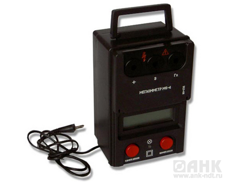 М6-4 – предназначен для измерения сопротивления изоляции электрооборудования в случаях необходимости повышенной мощности источника рабочего напряжения мегаомметра (например при контроле генераторов без демонтажа системы охлаждения и при контроле цепей вторичной коммутации, кабелей).