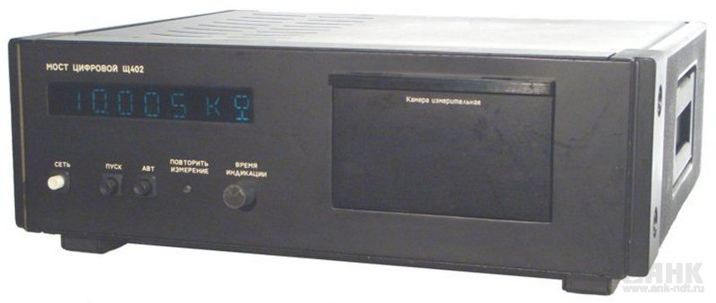 Мост цифровой Щ402 предназначен для измерения электического сопротивления на постоянном токе по четырехзажимной схеме от 5*10-2 до 1*104 Ом с подключением измеряемого объекта с помощью прилагаемого кабеля и по двухзажимной схеме от 1*104 до 5*1012 Ом с подключением измеряемого объекта во встроенной измерительной камере или с помощью прилагаемого кабеля.
