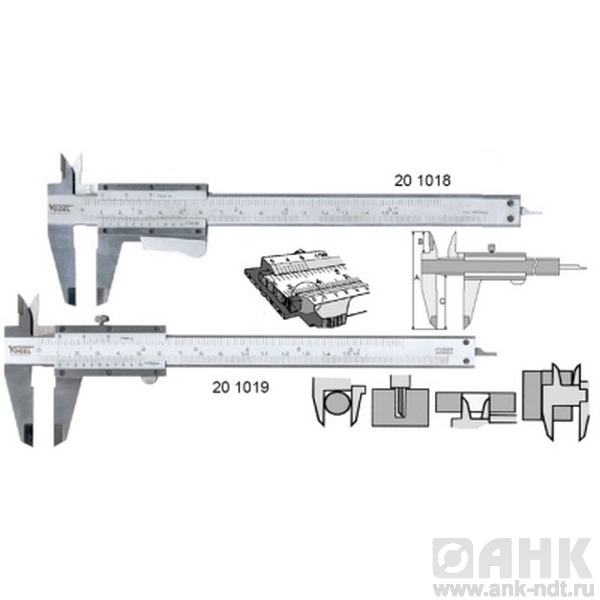 Штангенциркули Vogel с привертным нониусом диапазон измерений  0-150х0,05 мм, для простых работ, с глубиномером, предназначены для измерения и разметки размеров – внешних и внутренних. Конструкция прибора довольно проста: представлена двумя измерительными поверхностями: базовой, соединенной со штангой-линейкой, и дополнительной, сопряженной с рамкой, которая движется по линейке, между которыми выставляется размер. На линейке имеются деления, а на рамке – установленный или выгравированный нониус.