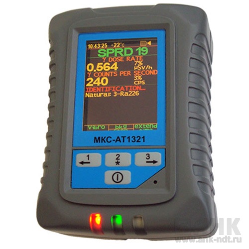 | Детекторы | Сцинтилляционный детектор NaI(Tl) Ø25x40 мм; Встроенный газоразрядный счетчик Гейгера-Мюллера |
