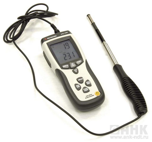 Современная модель термоанемометра с возможностью температурных измерений, работающая по принципу охлаждения воздушным потоком нагретой нити. Датчик — миниатюрный стеклянныйтермистор — размещается в малогабаритной измерительной головке диаметром на телескопической ручке. Обеспечивает быстрые и точные измерения даже при низком значении скорости движения воздушного потока. Прибор имеет инновационный дизайн корпуса.