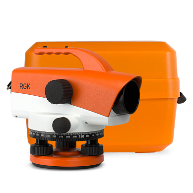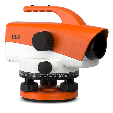 Оптический нивелир RGK C-32 – идеальный прибор для геодезических исследований. Небольшой вес и удобная ручка позволяют легко перемещать прибор между точками измерения, а прочный корпус, выполненный из качественного металла, соответствует стандарту защиты IPХ6 и надёжно защищает оптику нивелира от пыли и  влаги. Яркая оранжевая окраска прибора предотвращает случайное повреждение нивелира в сумерках.