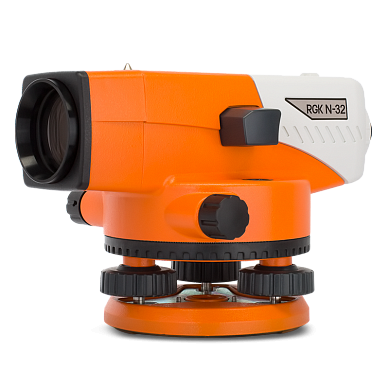 Корпус нивелира выполнен из качественного металла, оптика и подвижные элементы – из прочных материалов, обеспечивающих долгий срок службы нивелира даже в неблагоприятных условиях строительной площадки. Уровень защиты RGK N-32 соответствует классу IPX6 – корпус надёжно защищает прибор от влаги и пыли. Яркая оранжевая окраска предотвращает случайное повреждение прибора в условиях недостаточной видимости. Нивелир снабжён стандартным 5/8» разъёмом для крепления на штатив. Благодаря весу всего в 1,8 кг, перемещение оптического нивелира RGK N-32  между точками измерения не вызовет никаких трудностей.