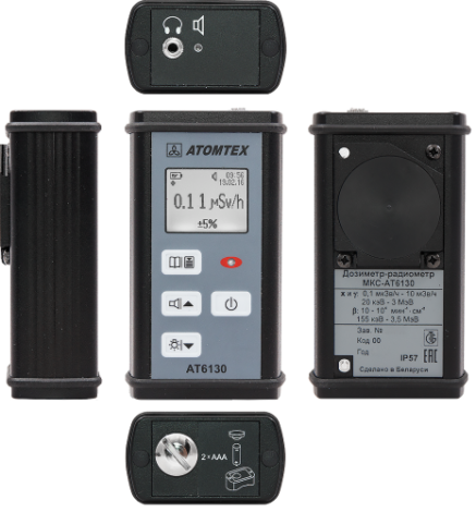 - Измерение мощности дозы до 100 мЗв/ч (АТ6130Д)